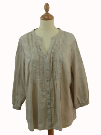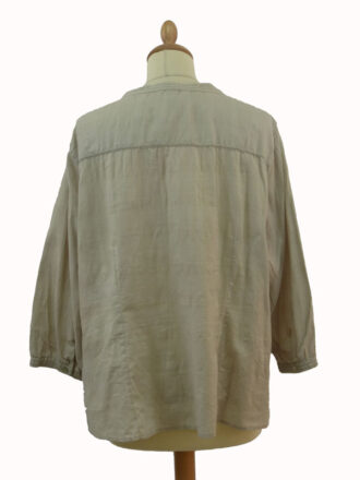 Blusas y CamisasBlusa de seda de manga corta estampada de la marca Laga. Es de color verde y la tenemos en una talla M. Está en muy buen estado.