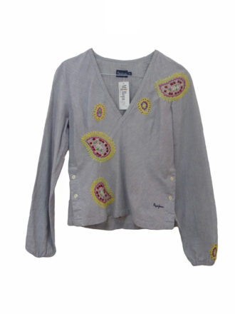 Blusas y CamisasBlusa de la marca RISORTA, confeccionada en tela de algodón estampada, es de manga larga. Está nueva con etiqueta y es una talla 44.
