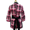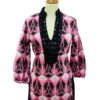 Blusón estampado con piedras negras y lazada de la marca Almatrichi. Es de color rosa y marrón oscuro y lo tenemos en una talla 38. Está en muy buen estado.