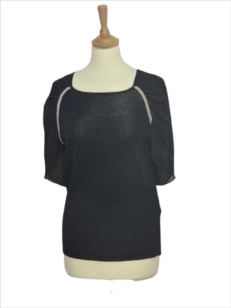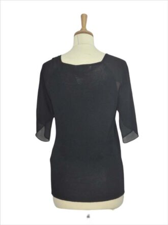 Jerséis y PolosJersey de punto fin con escote adornado con cinta fruncida y botones de la marca Burberry. Es de color crudo y lo tenemos en una talla 42. Es de color crudo y lo tenemos en una talla 42. Está en muy buen estado.