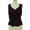 Vestidos de fiestaTop de fiesta raso y encaje con pedrería de la marca Lexus. Es de color vino y negro y lo tenemos en una talla 42. Está nuevo a estrenar.