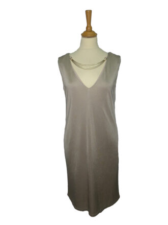 Vestidos de fiestaVestido de fiesta de gasa bordado con abalorios de la marca Tintoretto. Es de color azul turquesa y lo tenemos en una talla 44. Está nuevo a estrenar.