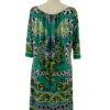 VestidosVestido estampado de manga corta con elástico en el escote de la marca Antea. Es de color verde, blanco y negro y lo tenemos en una talla XL. Está en muy buen estado.