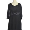 Vestido gasa en manga larga con jaretas en cuerpo y tablitas en falda.