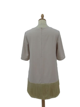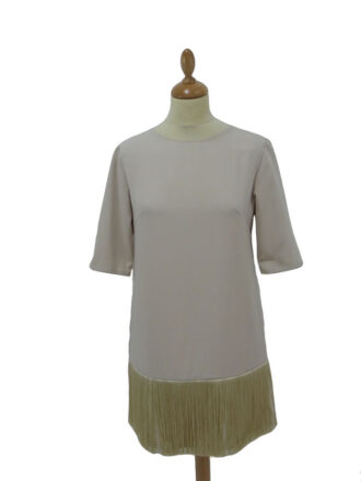 VestidosVestido de la firma MANGO de punto, tiene manga corta y está adornado con dibujo en el bajo de la falda con lentejuelas negras y plateadas. Está perfecto de una o dos puestas y es una talla L.